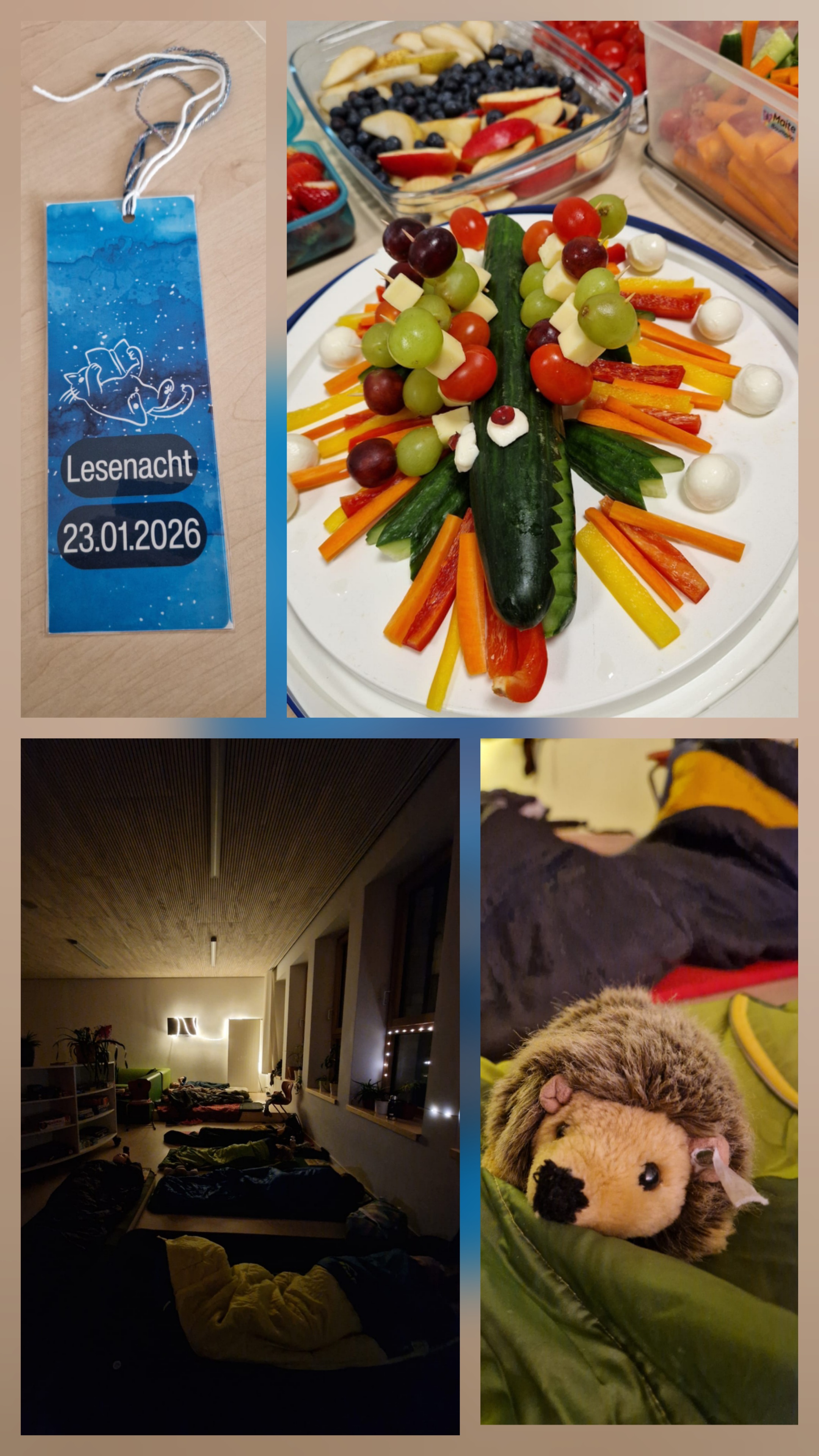 Am 23.01. fand der Erlebnistag der zweiten Klassen in Form einer Lesenacht statt. Neben einem reichhaltigen Buffet (DANKE an die Eltern) konnten die Kinder in fünf verschiedenen Themenräumen spannenden Geschichten lauschen. Zur Auswahl standen ein Horrorzimmer, lustige Geschichten, Geschichten aus Omas Zeiten, ein Harry-Potter-Themenraum und Tiergeschichten. Gegen 22 Uhr ab es ganz klassisch eine Katzenwäsche und alle konnten ihr Lager in den Übernachtungszimmern aufschlagen. Nach einem leckeren Cornflakes- und Restefrühstück freuten sich die Kinder auf ihre Eltern und konnten zu Hause hoffentlich etwas Schlaf nachholen.